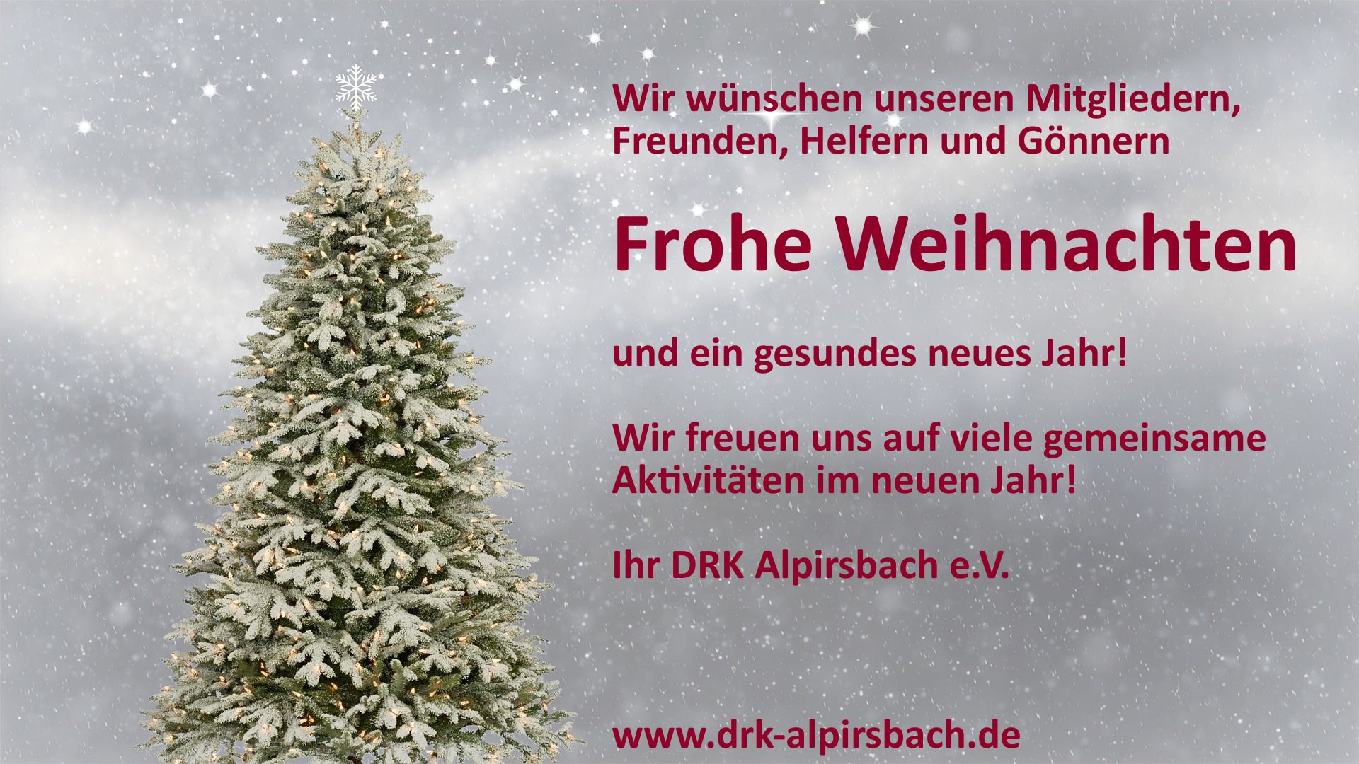 Wir wünschen unseren Mitgliedern, Freunden und Gönnern sowie unseren vielen engagierten Helfern und den Kameraden aller Hilfsorganisationen in Alpirsbach und darüber hinaus friedliche Weihnachten und ein erfolgreiches Helferjahr 2026!